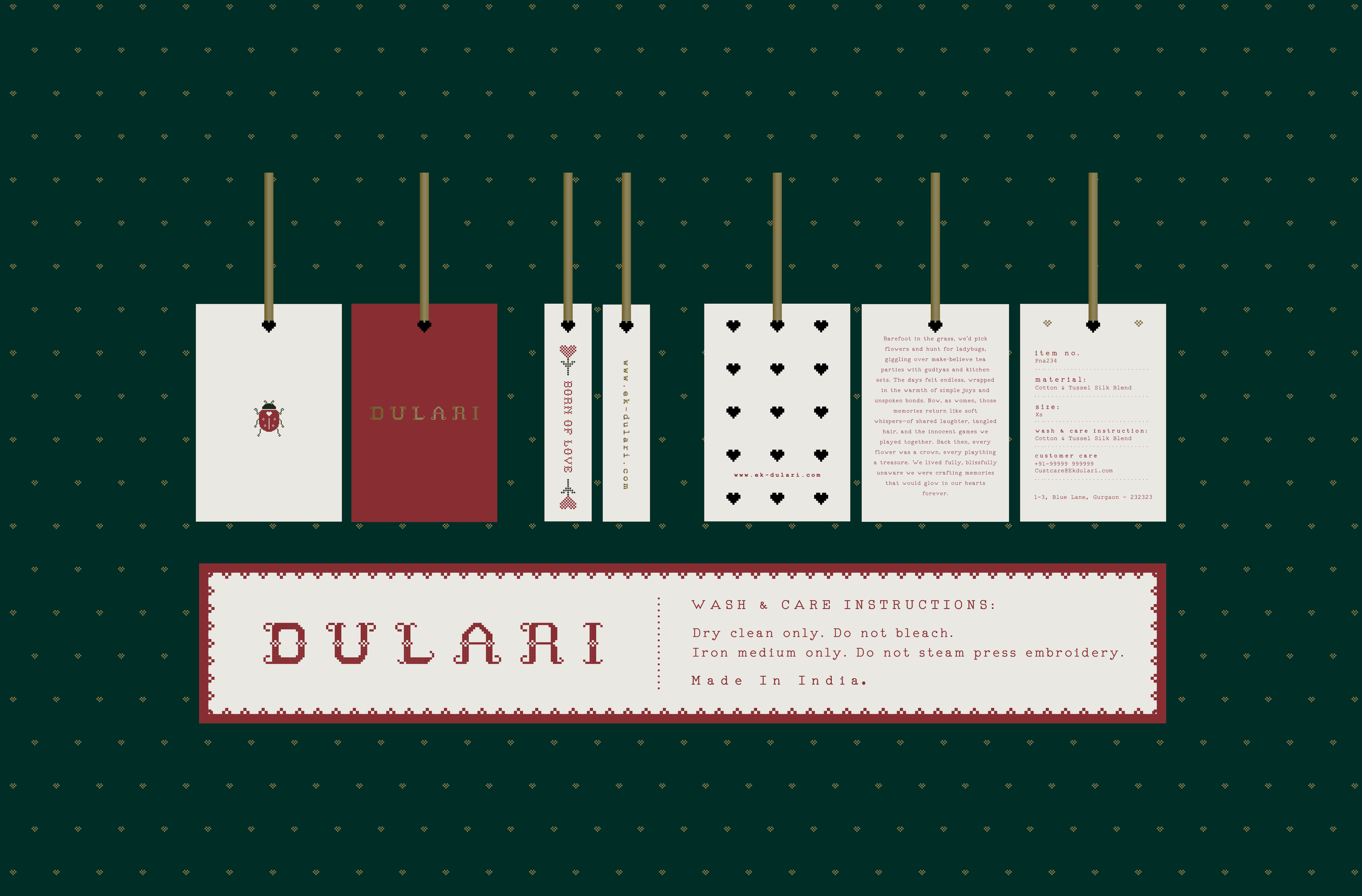 Dulari is not built from trends, but from memory. From the quiet magic of childhood gardens, the softness of being cared for, and the fleeting joy of a ladybug landing on your skin. Founded on the belief that every woman deserves to feel cherished, Dulari translates warmth into form. Through restrained typography, thoughtful embroidery, and a palette designed to age with grace. Here, luxury is not loud. It is discovered slowly, repeated with intent, and carried forward across garments as a feeling that stays.